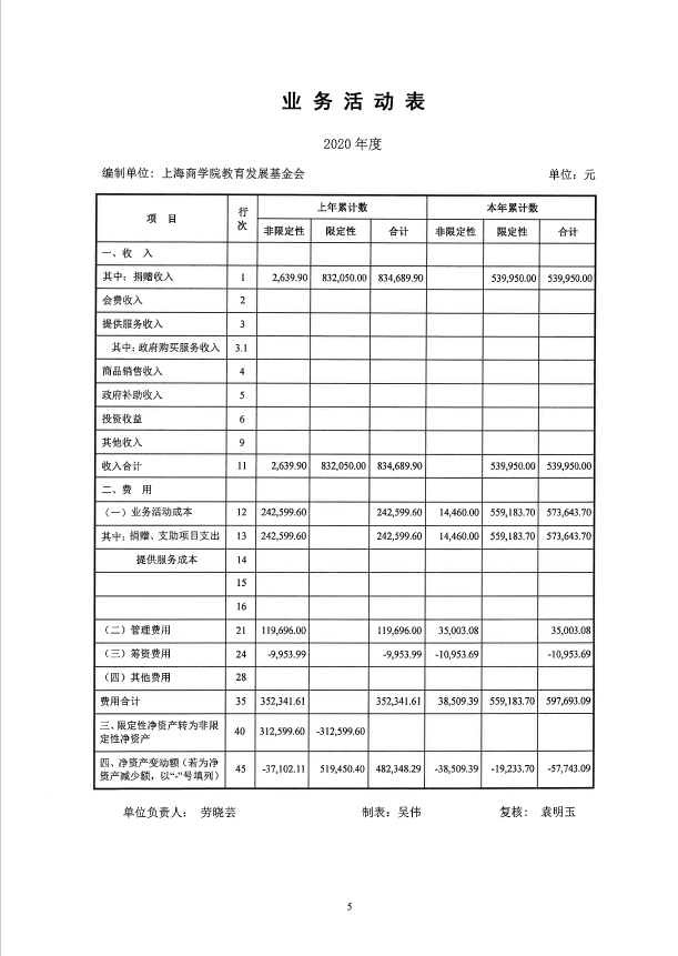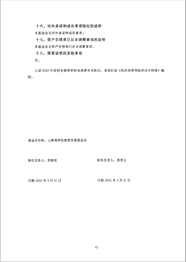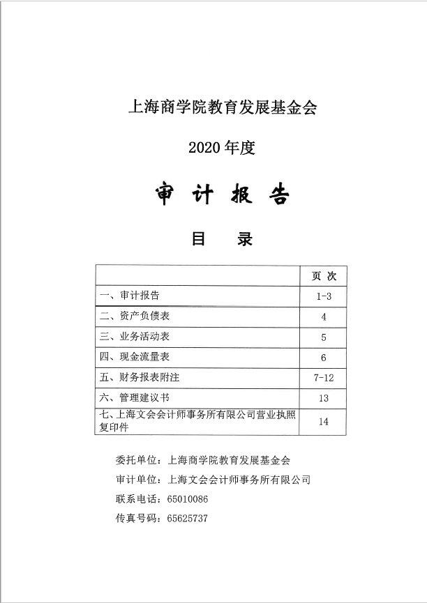 上海商学院教育发展基金会2020年度审计报告