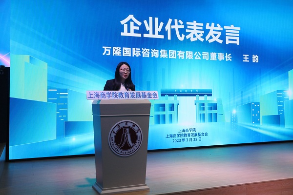 企业奖学金颁奖典礼颁发的是“上海电气杯”科创竞赛奖学金、上海洛桑酒店管理学院东湖企业奖学金。计算机科学与技术201班盛逸飞、上海洛桑酒店管理学院电子商务221班施钧沂、朝鲜语202班赵颖代表获奖同学发言,感谢学校对他们的悉心培养,感恩企业的倾情赞助。万隆国际咨询集团有限公司董事长王韵代表企业发言。她表示万隆集团与上海商学院缘起2006年,通过拨专款设立“万隆育才奖学金”、成立上海商学院万隆会计学院、深耕产学研基地,发挥自身行业优势,推动产教深度融合,未来将继续就专业交流与研究、人才培养与储备、课题调研与探讨等环节挖掘更深层次的互惠交流。党委副书记陈晓峰希望获奖同学常怀感恩之心,深刻理解企业奖学金所蕴含的重要意义,勤奋好学,增长才干,为行业发展做出贡献,为祖国建设添砖加瓦。